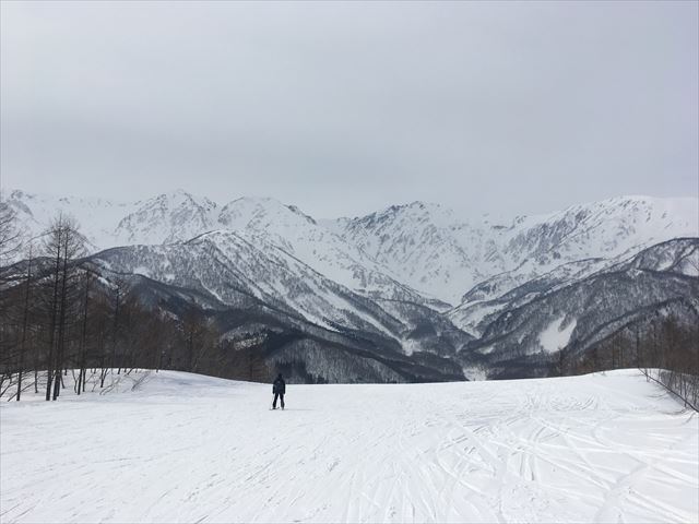 ここは西側斜面にコースがあって、唯一北アルプスを真正面に望みながら滑ることができる白馬エリアのゲレンデ!!